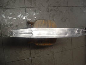 In eerste instantie was het de bedoeling om de achterbrug helemaal te polijsten, maar een deukje aan de zijkant gooide echter roet in het eten, ik heb toen besloten om de brug silvergrijs te spuiten. Toch wil ik deze t.z.t. nog een keer vervangen door een gepolijst exemplaar. |